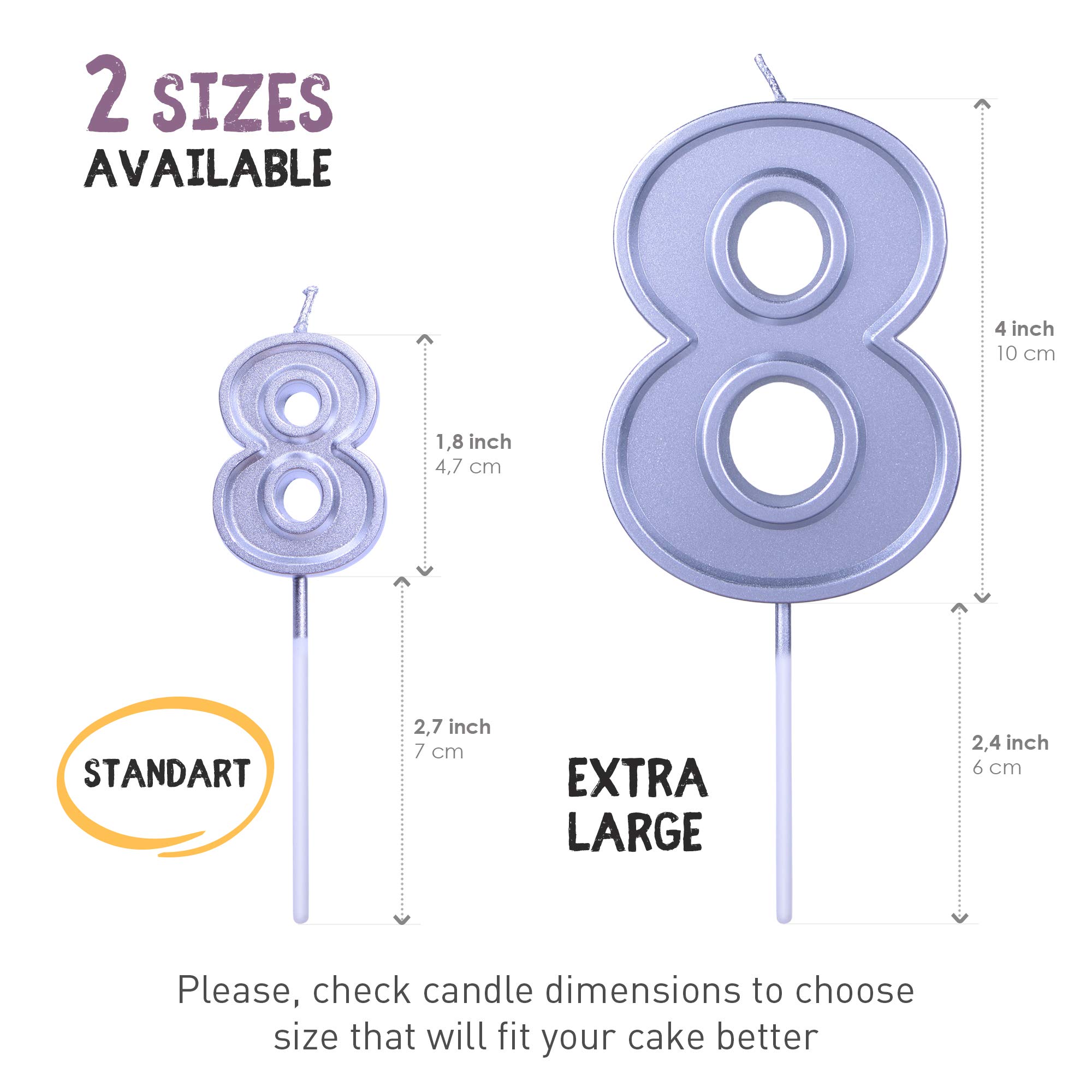 - ✮ MIX & MATCH ✮ - mix silver number candles on sticks for any occasion. This is not only a perfect baby’s eighth birthday candle, you can mix all numbers and find a number solution most suitable for you – whether it is for 18-year, 28-year or 80-year anniversary. Moreover, our product is available in 9 colours – purple, rainbow, pink, gold, silver, rose gold, red, blue and black.